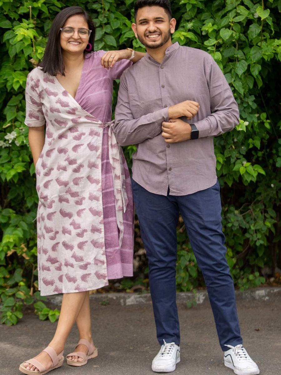 Inspired by the soft hues of the Aurora Borealis, this khadi cotton wrap dress is handwoven, naturally dyed, and super breathable. With a midi length, adjustable waist, two pockets, and a flattering fit-and-flare silhouette, it’s a versatile piece that works beautifully across occasions and styles.
