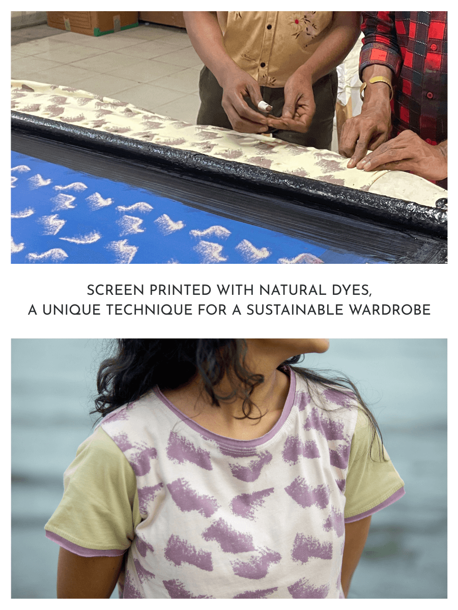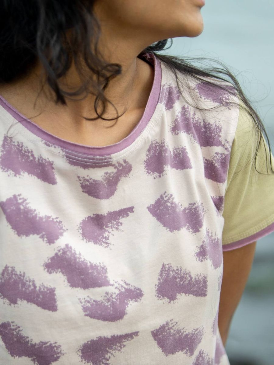 This modest-length crop top features a soft Aurora borealis-inspired print on breathable organic cotton, naturally dyed for a gentle, skin-friendly finish. With a color story that stands out and a fit made for free movement, it's your go-to for workouts or weekend casuals.
