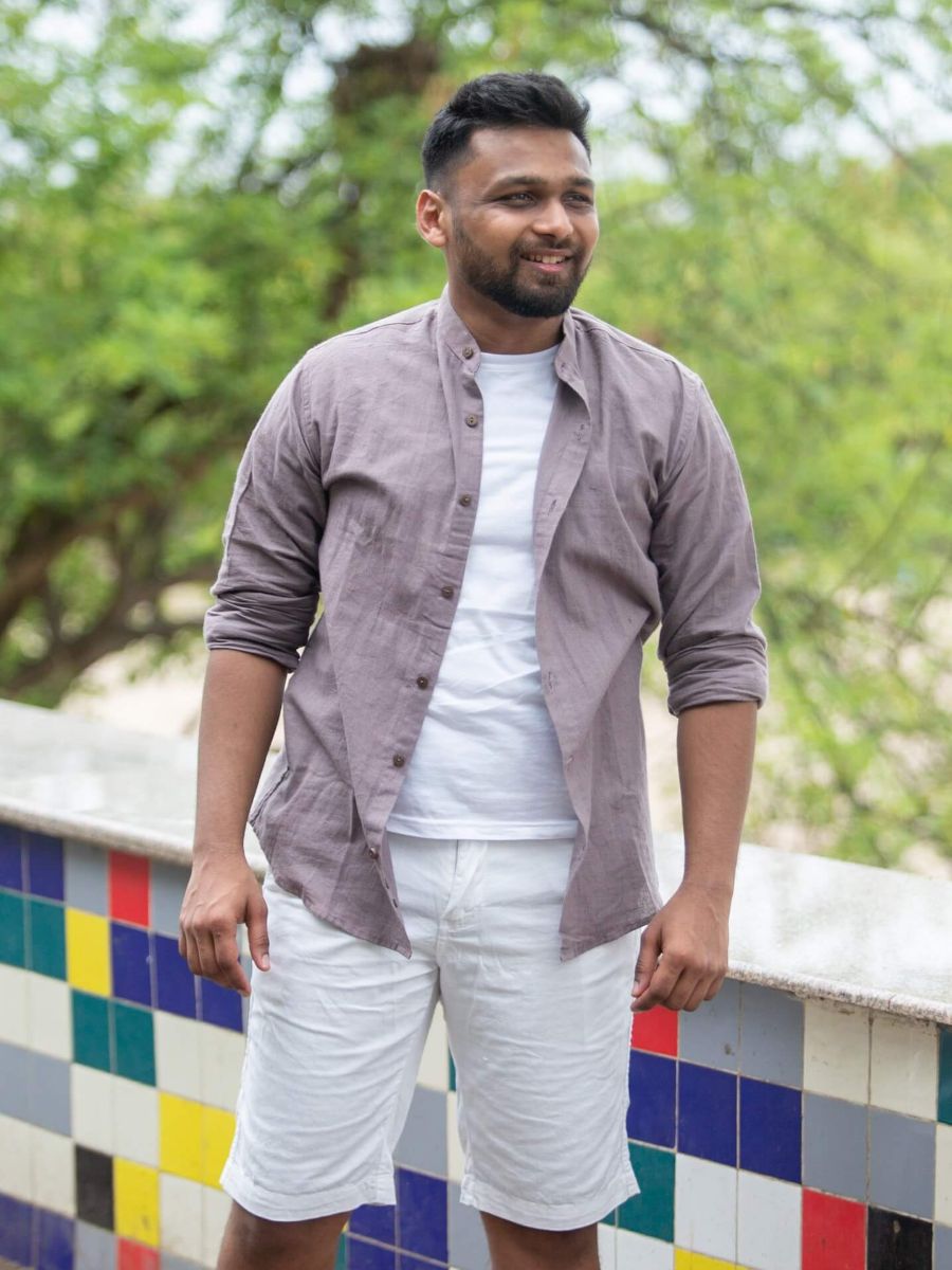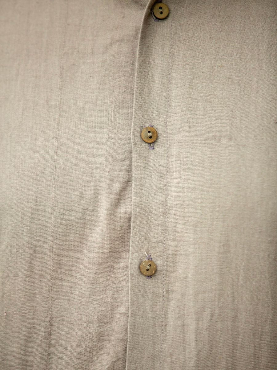Make a subtle statement with this chocolate brown khadi cotton shirt — a refined neutral for the modern wardrobe. Handwoven and naturally dyed, it features a sleek mandarin collar and breathable fabric for all-day comfort. This elevated basic blends timeless style and sustainability, making it a must-have for versatile, conscious dressing.